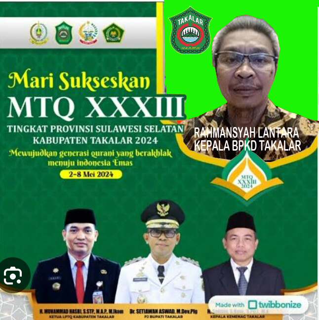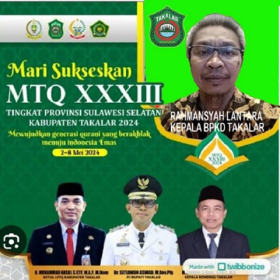Kab. Takalar didapuk menjadi tuan rumah pada perhelatan MTQ tingkat Prov. Sulsel tahun 2024, tentu hal ini menjadi suatu kebanggaan bagi masyarakat Takalar. Sebagai tuan rumah, kita ingin memberikan yang terbaik kepada peserta dan kafilah dari 24 kabupaten di prov. Sulsel. Olehnya itu kita semua wajib mensukseskannya.
