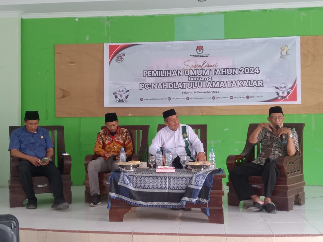 pembaharuanpost.com.—-Komisi Pemilihan Umum (KPU) Kabupaten Takalar bersama Pengurus Cabang Nahdlatul Ulama (NU) Kabupaten Takalar, menggelar sosialisasi pemilihan umum (Pemilu) tahun 2024, di Gedung NU Takalar, Kelurahan Kalabbirang Kecamatan Pattallassang, Kamis (14/12/2023).