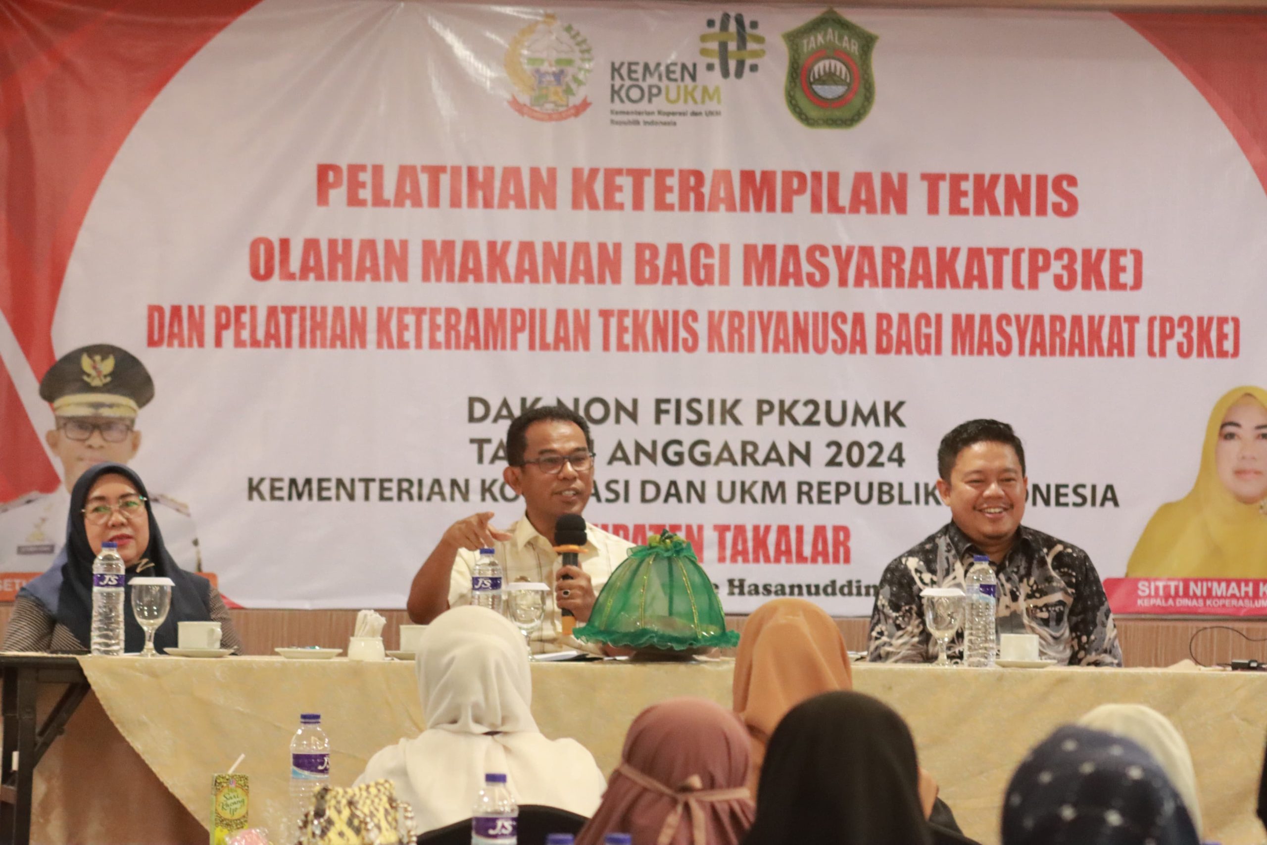 Turut membersamai pelatihan tersebut Kepala Dinas Koperasi, Usaha Kecil, Menengah, Tenaga Kerja dan Transmigrasi Prov. Sulsel, Kepala Dinas Koperasi, Usaha Kecil, Menengah, Tenaga Kerja dan Transmigrasi Kab. Takalar, para Kepala Bidang Dinas Koperasi, Usaha Kecil, Menengah, Tenaga Kerja dan Transmigrasi Kab. Takalar, serta para peserta