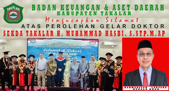 Gelar Doktor Sekda Takalar H. Muhammad Hasbi. S.STP, M.AP, resmi disematkan pada daftar gelarnya setelah dinyatakan lulus dengan predikat Cumlaude dalam sidang terbuka promosi Doktor di kampus Pasca Sarjana Institut Pemerintahan Dalam Negeri (IPDN) Jakarta, Selasa 8 Oktober 2024.