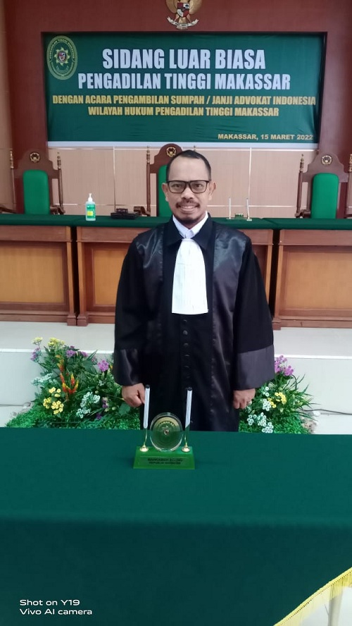 PP. Makassar. Sebanyak 116 Advokat yang tergabung dalam Perkumpulan Advokat Muslim Indonesia (PERADMI) dan Perhimpunan Advokat Indonesia (PERADI) secara resmi diambil sumpah advokat oleh Ketua Pengadilan Tinggi Makassar Dr, Syahrial Sidik, S.H., MH, (Selasa :15-03-2022).