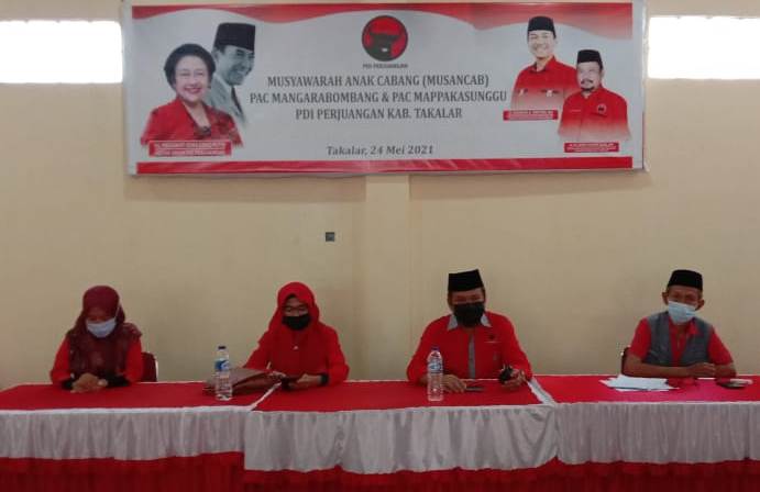 PP. Takalar. Berlangsung di Ruang Pertemuan Penginapan Nyigiru, Kalampa poros Takalar – Makassar, Partai PDI Perjuangan Kabupaten Takalar, telah sukses melaksanakan Musyawarah Anak Cabang (MUSANCAB) untuk PAC. Kecamatan Mappakasunggu dan PAC Kecamatan Mangarabombang. Kegiatan tersebut dipantau langsung oleh Ketua PDI Perjuangan Kabupaten Takalar Ir. Andi Noor Zaelan beserta jajaran pengurus teras Partai bergelar Moncong Putih tersebut.(Senin: 24=05-2021).