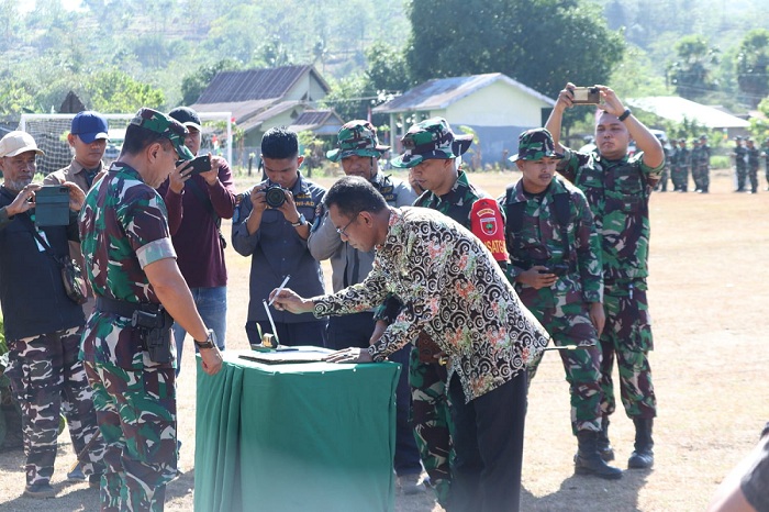 pembaharuanpost.com.—-Pj. Bupati Takalar Dr. Setiawan Aswad, M. Dev. Plg hadiri Penutupan TMMD Reguler ke 117 Kodim 1426/Takalar Korem 141/Toddopuli yang berlangsung di Lapangan Sepak bola Baba Kelurahan Bontokaddato Kecamatan Polongbangkeng Selatan Kabupaten Takalar. Kamis, 10/10/2023.