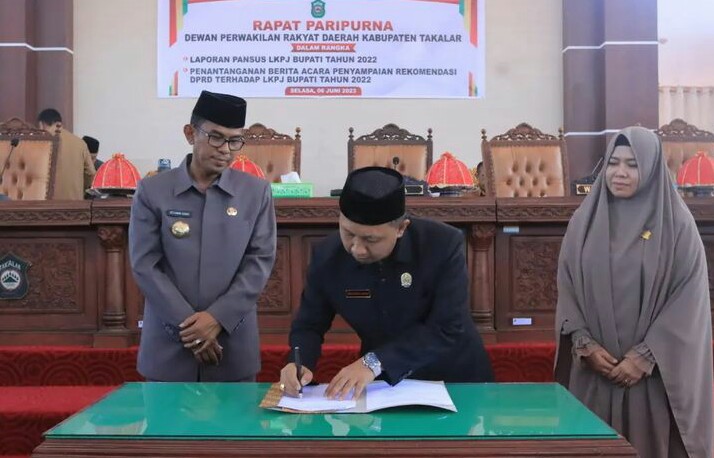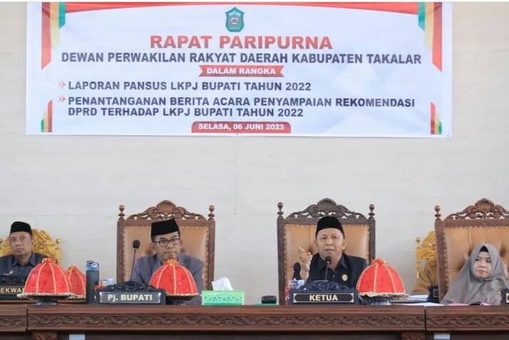 Pembaharuanpost.com.—Pj. Bupati Takalar Dr. Setiawan Aswad. Menghadiri rapat Paripurna DPRD Takalar dalam rangka laporan pansus LKPJ bupati tahun 2022 dan penandatanganan berita acara penyampaian rekomendasi DPRD kab. Takalar terhadap LKPJ Bupati tahun 2022 (selasa: 06 juni 2023) Kegiatan tersebut berlangsung di Rauang Sidang Lantai II Gedung DPRD Kabupaten Takalar