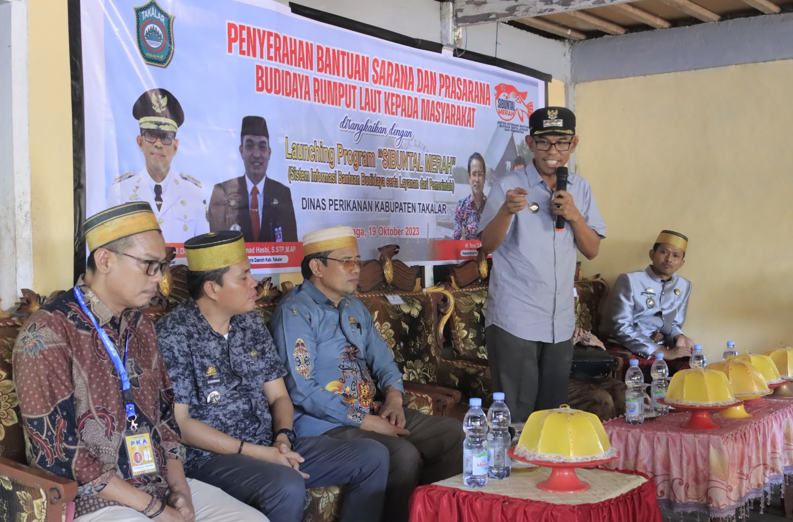 Dalam sambutannya Pj. Bupati mengatakan bahwa keberadaan takalar sebagai salah satu produsen rumput laut terbesar di Sulsel, tentunya menjadi sebuah peluang untuk peningkatan kesejahteraan masyarakat.  bantuan ini merupakan stimulan bagi masyarakat untuk mengembangkan usahanya sehingga dapat meningkatkan nilai produksi budidaya.
