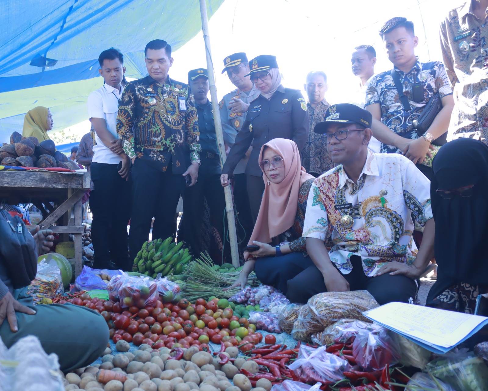 “Hari ini kita turun langsung ke pasar untuk meninjau harga bahan pangan strategis khususnya komoditi yang berdampak pada