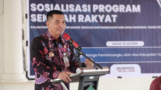 pembaharuanpost.com.—-Kabupaten Takalar merupakan salah satu kabupaten yang masuk Tahap I dalam program Sekolah Rakyat, terkait hal itu. Sekretaris Daerah Kab. Takalar Dr. H. Muhammad Hasbi,.S.STP,.M.AP,.M.IKom membuka Sosialisasi Sekolah Program Rakyat yang dihadiri Kepala Dinas Sosial & PMD Kab. Takalar, Dinas Kesehatan, Kadis Pendidikan Kab. Takalar, Staf Ahli Bupati Takalar, para Kepala Sekolah serta para orang tua siswa Sekolah Rakyat Kab. Takalar di Baruga Panrannuangku, Kamis (10/7/2025).