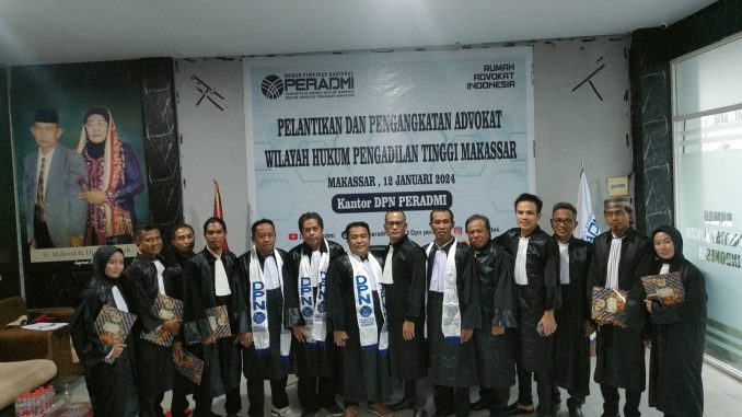 Ketua DPN PERADMI,Sulaeman,S.H.,C.L.E mengatakan Pelantikan dan Pengangkatan Advokat sebagai tindaklanjut setelah melewati proses Pendidikan Khusus Profesi Advokat dan Ujian Profesi Advokat  dan selanjutnya melengkapi berkas untuk Penyumpahan di Pengadilan Tinggi Makassar.