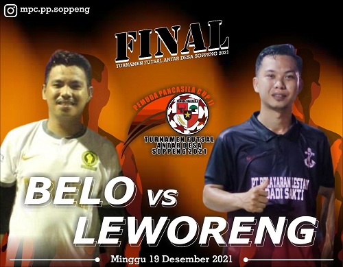 PP. Soppeng. Turnamen futsal antar desa sekabupaten soppeng Pemuda Pancasila Cup II akhirnya mencapai puncaknya. Lapangan gasis watansoppeng akan menjadi panggung perhelatan babak final, Minggu (19/12/2021). Desa Belo dan Desa Leworeng akan berduel dalam laga perebutan gelar juara.