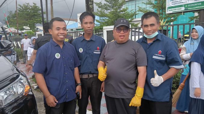 Dengan sarung tangan kuning yang masih dikenakan, Daeng Manye berdiri di tengah pegawai sebagai simbol komitmen bersama menjaga kebersihan.