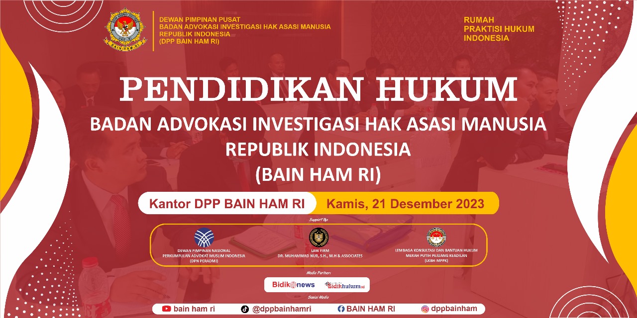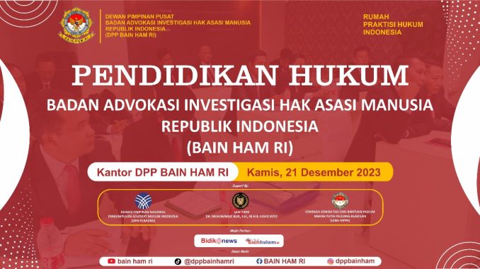 Pendidikan Hukum BAIN HAM RI akan melahirkan Praktisi/Pendamping hukum BAIN HAM RI untuk masyarakat yang membutuhkan