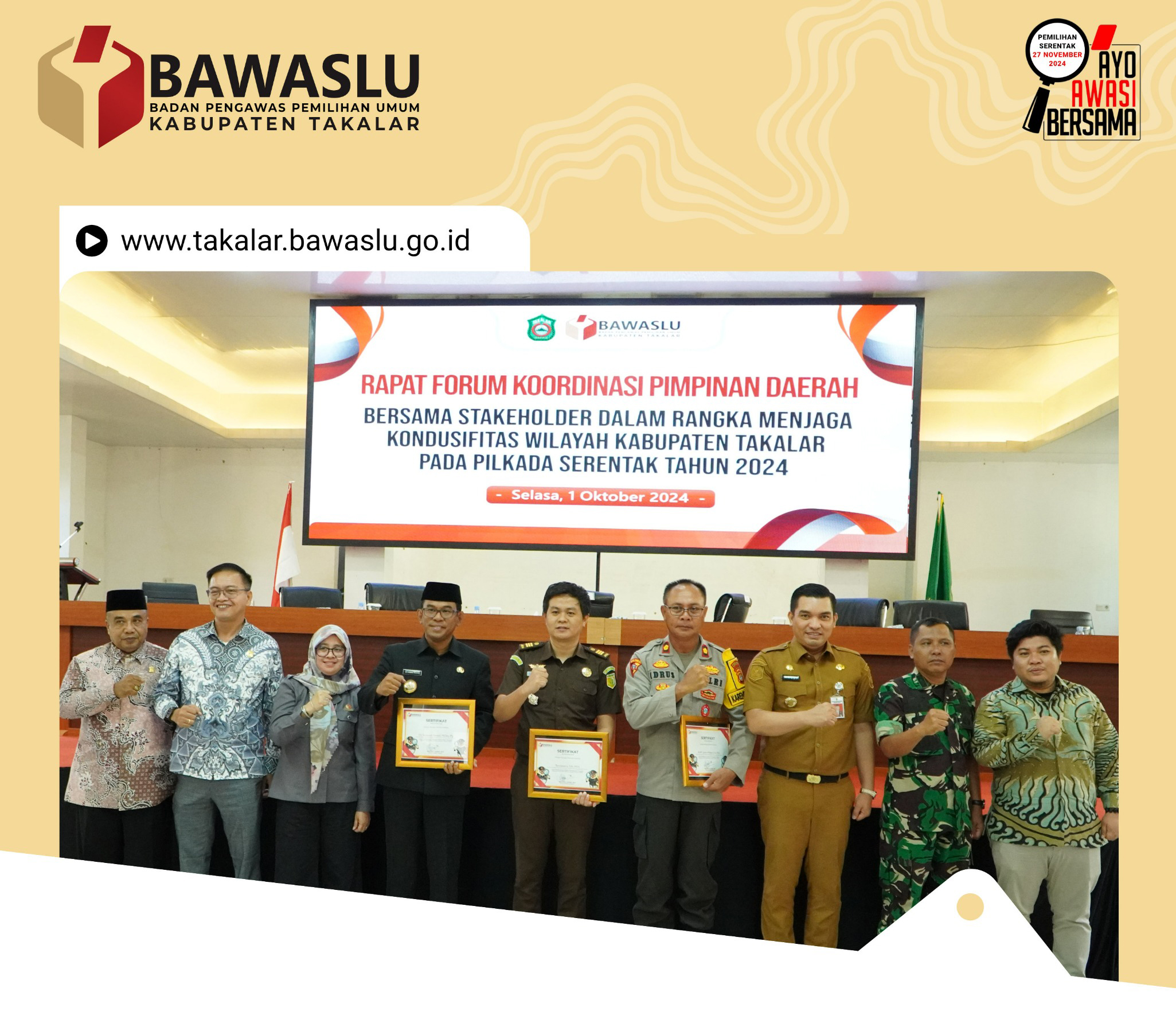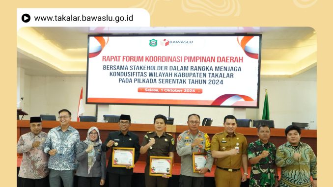 pembaharuanpost.com.—— Bawaslu Kabupaten Takalar mengikuti Rapat Forum Koordinasi Pimpinan Daerah Bersama Stakeholder dalam rangka Menjaga Kondusifitas Wilayah Kabupaten Takalar pada Pilkada Serentak tahun 2024 di Aula Kantor Bupati, Selasa (01/10/2024).