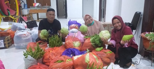 Mungkin kebanyakan orang atau penyumbang membawa Beras, Telur, Mie dan pakaian, Pegiat Literasi ini melengkapi bantuan berupa sayur mayur.