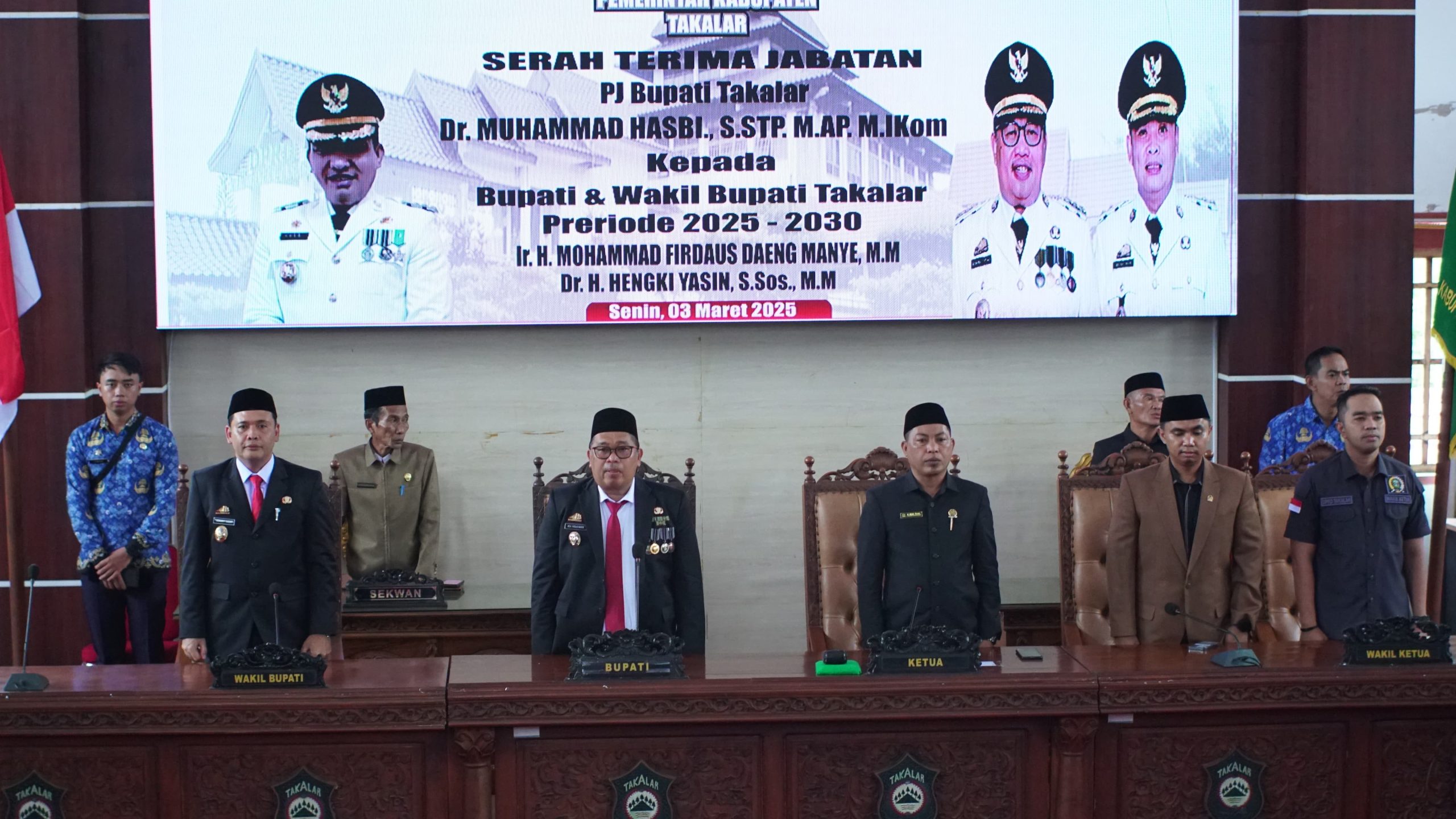 Takalar.—–Serah Terima Jabatan (Sertijab) dari Pj. Bupati Takalar dari Dr. Muhammad Hasbi,.S.STP,.M.AP,.M.IKom kepada Bupati Takalar Ir. H. Mohammad Firdaus, MM berlangsung dalam Sidang Paripurna Dewan Perwakilan Rakyat Daerah (DPRD) Kab. Takalar, Senin (3/3/2025).