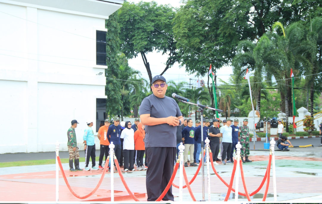 “Hari ini kita berkumpul untuk melaksanakan kerja bakti di lingkungan kantor dan fasilitas umum. Saya menegaskan pentingnya membudayakan pola hidup bersih agar tercipta lingkungan kerja yang nyaman, sehat, dan asri,” ujar Bupati.