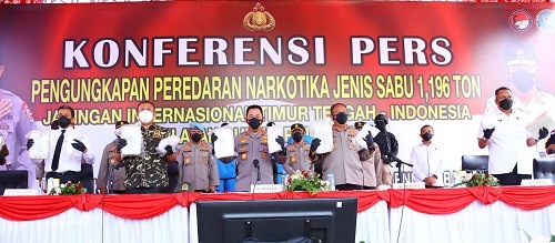 Hal itu ditegaskan oleh Kapolri saat memimpin konferensi pers pengungkapan narkotika jenis sabu seberat 1,196 ton di Pusdik Intelkam, Soreang, Jawa Barat, Kamis (24/3/2022).